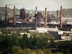 During Industrialization in the Soviet Union, the plant was transformed into a new technical base.[3][6] During the First Five-Year Plan, mechanization of the mill and a bunker system for blast furnace charging were introduced and technical renovation was initiated; in 1936 the reconstruction of the mill and the construction of the flat furnace mill were completed, the plate and profilerolling mills were mechanized and a new, powerful blooming mill replaced the old rail-rolling mill.[5]