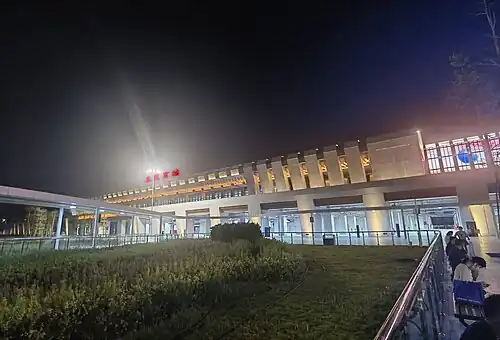Dongguan South railway station (Chinese: 东莞南站) is a station in Tangxia, Dongguan City, Guangdong Province, China. It is one of the stations on the Beijing-Hong Kong High-Speed Railway between Huizhou North railway station in Huizhou and Guangmingcheng railway station in Shenzhen City.