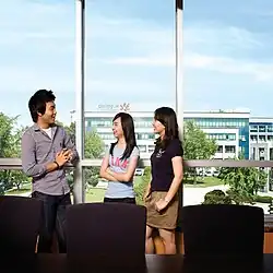 Dongguk University (Korean: 동국대학교; RR: Dongguk Daehakgyo) is a private university in Jung District, Seoul, South Korea. A top-tier university acknowledged locally in Korea. It is one of the few Buddhist-affiliated universities in the world, and is a member of the International Association of Buddhist Universities.[3] Dongguk University is best known for its Department of Film and Imaging Arts. Many of Korea's most famous actors and directors graduated from this school. It is home to the Chungmuro Visual Arts Research Center, the most advanced facility of its kind in South Korea and a historical birthplace of Korean cinema. The university also regularly hosts national film festivals, much like Hollywood in the United States.[4]