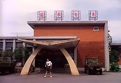 The idea of the establishment of the center was originated from Dongshih Jhuang Cultural Association. The building was renovated from the waiting area of the former Dongshih train station (Chinese: 東勢車站), constructed during the Japanese rule to connect Dongshi with sugarcane trading areas.[1] The platform and old facilities of the train station were removed during the renovation but the passengers waiting benches were kept.[2]