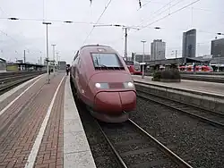 Eurostar | Dortmund – Essen – Duisburg – (Düsseldorf Airport –) Düsseldorf – Cologne – Aachen – Liège-Guillemins – Brussels – Paris | Some services | Eurostar |