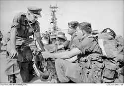 ![]() Vincent speaks to 2RAR troops on HMAS Sydney | |