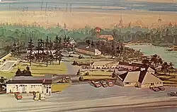 E. V. Yeager owned a sporting goods business on nearby Route 88, and in 1949 moved it to U.S. Route 1 (US 1),[3] to open the following year as the Down-East Village Motel, with a Gulf gas station. They leased the restaurant to Simpson's Hamburger.[4]
