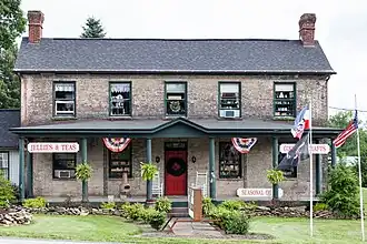 Downer Tavern, also known as the Jonathan Downer House, is a historic home that also served as an inn and tavern located in Chalk Hill, Wharton Township, Fayette County, Pennsylvania. It was built about 1826, and is a 2+1⁄2-story, 5-bay, brick building with a center hall floor plan with Federal style detailing. It has a two-story, kitchen ell. Also on the property is a 1+1⁄2-story stone spring house (now a residence) and a late-19th century frame wash house. It served as a stop for 19th-century travelers on the National Road.[2]