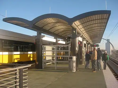 Downtown Carrollton station is a DART light rail station in Carrollton, Texas. It serves the DART Green Line.[2] This station will serve as an inaugural stop on the Silver Line,[3][4] as well as the new terminus for DCTA's A-train.[5]