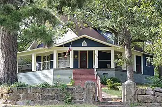 The Dr. Cyrus F. Crosby House is a historic house at 202 North Broadway Street in Heber Springs, Arkansas. It is a 1+1⁄2-story wood-frame structure, with a broad gabled roof and weatherboard siding. The roof is studded with gabled dormers, and shelters a wraparound porch supported by square posts. Although the overall style of the house is Craftsman, the porch's soffits are enclosed in the style of the Prairie School. The house was built in 1912 for a doctor, who had a medical practice and drug store in the city, and also engaged in an unsuccessful attempt to promote the area's natural mineral springs as a resort destination.[2]