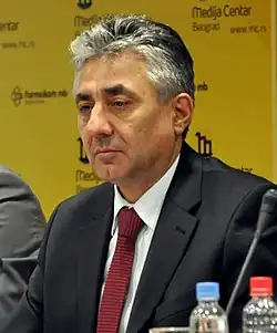 He again appeared in the lead position on the Radical list for Grocka in the 2008 local elections and received a mandate for another term when the list won thirteen seats.[20][21][22] After this election, he left the Radicals and became the local leader of the Progressives.