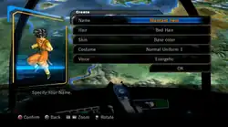 In early September, more details were divulged on the character creator mode referred to as "Hero Mode". The mode gives players the option of customizing a character of their choosing with a variety of existing and original outfits and hairstyles, in addition to the ability to change and adjust their color schemes.[10] The following issue of Shonen Jump revealed that the game would include a new opening introduction in traditional 2D animation set to the song "Cha-La Head-Cha-La" by Hironobu Kageyama (Dragon Ball Z's 1st Opening Song in Japan).[11]
