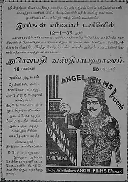 ![]() A poster of Draupadi Vastrapaharanam (Thanavanikan Magazine 1935, Rangoon) | |
