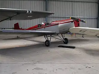 The Druine D.5 Turbi was a light aircraft designed in France in the 1950s for home building. It was a low-wing cantilever monoplane with fixed tailskid undercarriage. The pilot and a single passenger sat in tandem, open cockpits. Essentially a scaled-up version of the Druine Turbulent design, the Turbi shared that aircraft's wooden construction. Again, like its predecessor, it was intended to be able to be powered by a variety of air-cooled engines.
