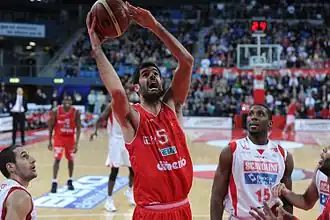 Dušan Šakota (Serbian Cyrillic: Душан Шакота, Greek: Ντούσαν Σάκοτα Ntousan Sakota, born 22 April 1986) is a Serbian-Greek former professional basketball player. At 6'10 3⁄4" (2.10 m) tall,[1][2] he played the power forward position and was known for his shooting ability. He has won two triple crowns in his career. He was the team captain of AEK Athens of the Greek Basket League for five seasons, and with the club, he won the 2018 FIBA Champions League title, the 2018 Greek Cup title, and the 2019 FIBA Intercontinental Cup title.