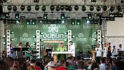 The event, produced and supported by the City of Dublin, is the largest 3-day Irish Festival on the planet. The Columbus Feis, an internationally renowned Irish dance competition, occurs every year at the same time as the Irish Festival.[2] The 2021 Dublin Irish Festival took place on August 6–8. This festival will mark 38 years. The main attractions play at stages located throughout Coffman Park, including the Guinness Celtic Rock Stage, Ohio State Wexner Medical Center Dublin Stage, The Memorial Tournament Trinity Stage, Giant Eagle Irish Thunder Stage, G & J Pepsi Shamrock Stage, Celtic Music House, Wendy's Wee Folk Stage and the Cardinal Health Ceili Dance Stage.[3]