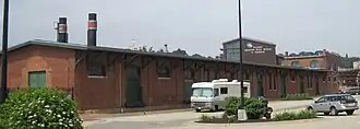 The Dubuque Freight House is a historic building located in Dubuque, Iowa, United States. Built by the Chicago, Burlington and Northern Railroad (CB&N) in 1901, this was the third and last freight house built by a railroad in the Ice Harbor area.[2] The other two facilities were built by the Illinois Central Railroad (1872) and the Chicago, Milwaukee and St. Paul Railroad (1874). These other two railroads were older, larger, and monopolized the bridge and tunnel that crossed the Mississippi River. The CB&N was fortunate that their freight house was located along the water's edge in that the river boats could tie up next to the building and load and unload cargo, and the railroad put box cars on ferries that docked in the Ice Harbor.[2] The Dubuque Boat and Boiler Works were headquartered on the west end of the facility for 20 years beginning in 1952. Founded in 1852 as the Iowa Iron Works, they provided engines, boilers and other equipment for river boats, and water craft for the United States Navy, United States Coast Guard, and the United States Army Corps of Engineers. The building was listed on the National Register of Historic Places in 1979.[1] It is now a part of the National Mississippi River Museum & Aquarium.