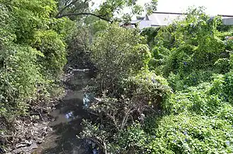 Sections of its upper reaches in Guildford and Merrylands have been channelized and piped underground as it passes under roads, playing fields and through housing development. It then flows through the suburbs of Granville and Clyde where it joins with A'Becketts Creek. In its lower reaches it is a tidal creek.