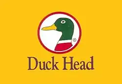 The Duck Head brand was founded in 1865 in Nashville, Tennessee, by George and Joe O'Bryan, two brothers who were buying surplus U.S. Army tent material. The material was a heavy canvas known as "duck", and the brothers began making work pants and shirts out of the strong material.[1] Their company became known as the O’Bryan Brothers Manufacturing Company.[2] The brothers sought to register the name "Duck" as a trademark in 1892, but the U.S. Trademark Registration Office rejected their application because the term was in general use. They registered the trademark "Duck Head" instead.[1] The company operated into the late 20th century, producing work clothing such as overalls and denim jackets under the Duck Head brand.[3]