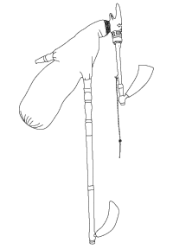 Accounts are conflicting regarding the exact form of the Hungarian bagpipe.[1] Cocks describes it as similar to the Bulgarian one which has a chanter and a bass drone but no tenor drone.[1] Baines (pp. 77–79) gives Hungary as one of the countries possessing the duda, which has this construction, also a Hungarian bagpipe with a diple (i.e., twin-bore) chanter, one bore of which gives a variable drone, the bag pipe having a bass drone in addition.[1] Robert Bright in Travels through Lower Hungary(1818), quoted by Flood (p. 79), describes the Hungarian bagpipe as having two drones and a chanter of square section (in other worlds the Dudelsack).[1] Fraser (p. 243) has a picture of a Hungarian bagpipe with one chanter and one drone of medium length, probably a bass drone.[1] It seems possible that all these forms of the instrument may be in use.[1]