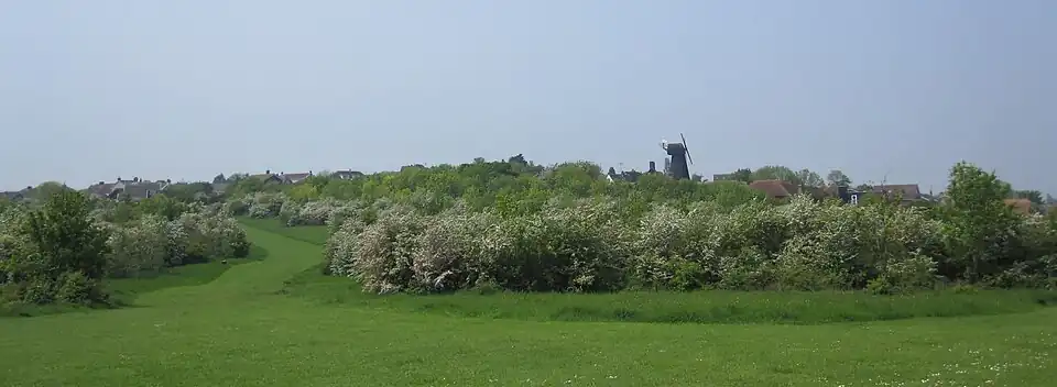 Duncan Down is an open, public, area to the south west of Whitstable and is the largest village green in the United Kingdom. It is a 21 hectare (52 acre) area of grass and woodland incorporating four ponds and a brook. The area is maintained by the Friends of Duncan Down with assistance from Canterbury City Council and has received funding from nearby planning development. Originally intended for housing development in the inter-war years it is now protected by its village green status.[1]