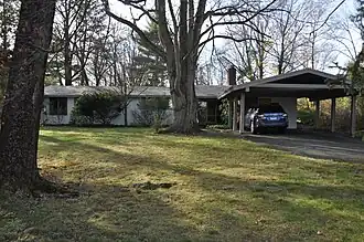 The Durisol House, also known as the Jens Risom House, is a historic house at 43 Marshall Ridge Road in New Canaan, Connecticut. Built in 1949, this Mid-Century Modern house was built to showcase cement-bonded wood fiber, a newly-developed material marketed under the brand name Durisol. The house was bought soon after its construction by designer Jens Risom, and is also known as the Jens Risom House. It was listed on the National Register of Historic Places in 2010.[1]