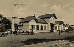 The first narrow gauge, 1,067 mm (3 ft 6 in), of NIS railway line stretched from the governor's office in Buitenzorg (now Bogor) to the capital city of Batavia (Batavia Noord or Batavia NIS) for 25 km (16 miles) and had branches to Meester Cornelis (just south of Manggarai) around 1 km (0.62 miles) and Kleine Boom (Pasar Ikan near Sunda Kelapa) for around 2 km (1.2 miles). After a two-year construction period, the line opened on January 31, 1873, and quickly proved profitable. The short town line to Kleine Boom was abandoned in 1891, because it had no connection to the rest of the NIS rail network and the port activities had been transferred to Tanjung Priok, and the line itself was removed in 1897. On 1 November 1913, the Batavia NIS station was sold to Staatsspoorwegen (SS, "State Railways") along with the Buitenzorg–Batavia line and it was closed in 1929 after Batavia-Benedenstad (Jakarta Kota) had been built.[5][6] By the end of 1918, the NIS had 57 locomotives, 35 passenger cars, 136 baggage cars and 1,393 freight cars. There were almost 23,000 train movements, with a total distance of around 1.23 million km. In 1917, nearly 4 million passengers were carried, of whom 3.99 million passengers were in class 3. By 1928, the NIS had carried 13.8 million passengers.