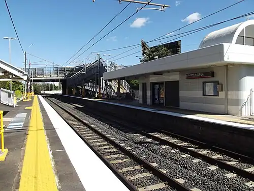 In September 1930, the standard gauge New South Wales North Coast line opened to the west of the station.[7] In 1995, as part of the construction of the Gold Coast line, the standard gauge line was converted to dual gauge.[8]