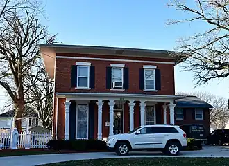 Dyersville was laid out in 1851.[4] It was named for early landowner James Dyer (1820–1864).[5] Dyer immigrated from Banwell, England and established a hotel, The Clarendon, in 1857. His sons, James Andrew Dyer, with 6th Iowa Cavalry Regiment and Henry Andrew Dyer, with 21st Iowa Infantry Regiment, served in the American Civil War.