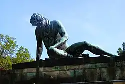 The Dying Gaul, also called The Dying Galatian[2] (Italian: Galata Morente) or The Dying Gladiator, is an ancient Roman marble semi-recumbent statue now in the Capitoline Museums in Rome. It is a copy of a now lost Greek sculpture from the Hellenistic period (323–31 BC) thought to have been made in bronze.[3] The original may have been commissioned at some time between 230 and 220 BC by Attalus I of Pergamon to celebrate his victory over the Galatians, the Celtic or Gaulish people of parts of Anatolia. The original sculptor is believed to have been Epigonus, a court sculptor of the Attalid dynasty of Pergamon.