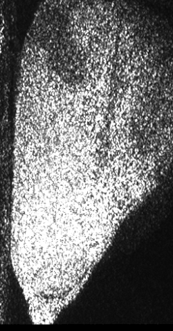 Figure 1 shows a sequence of speckle patterns in a corn seed in the start of its germination process where the dynamic effect is higher in the areas where the scattering centers are expected to be more active as is the case of the embryo and in a break in the endosperm region of the seed. The embryo is in the lower left side and the break is a river-like region in the center. In the crack, the activity is due to intensive inner water evaporation while in the embryo activity is higher due to metabolism of the alive tissue together with the activity caused by water evaporation. In the endosperm, the high right region of the image represents that the relatively low activity is due only to water evaporation.