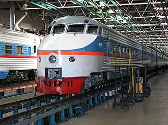 The ER200 was a Soviet electric train built in Riga by Rīgas Vagonbūves Rūpnīca. It was the first high-speed Direct Current intercity Electric Multiple Unit (EMU) train with rheostatic brake. There were two designs. The first design, begun in 1974, was the ER200-1 EMU, and went into commercial operation in 1984. The second design went into operation between Saint Petersburg and Moscow in 1996.