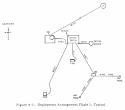The picture shows the one heat flow probe that was successfully deployed. Stored on the second subpackage. After successfully deploying one of the probes, Commander John Young inadvertently caught his foot on the cable to the experiment from the Central Station. The cable was pulled out of its connector on the Central Station. Although some technicians and astronauts on Earth believed that a repair was feasible, mission control ultimately decided that the time necessary for a repair could be put to better use on other work, and so the experiment was terminated. |