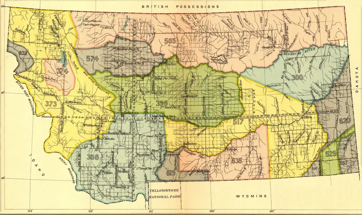 This is a vacuum in the cessions of Indian land. With adjoining tribal areas outside Montana, the territory was claimed by "Methow, Okanagan, Kooteny, Pend d'Oreille, Colville, North Spokane, San Poeil, and other tribes". When tribal reservations were established in other states in 1872, the United States "simply took possession" of area 532 on "December 0, 1871".[2]: 856–857