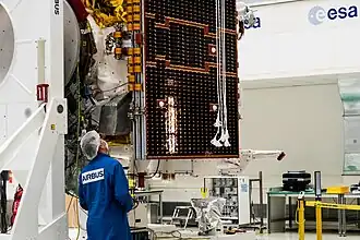 As the prime contractor, Astrium was responsible for the satellite's design, development and integration.[9] Design and construction began in early 2009.[10] As of January 2011, the total budget for the project was £500 million (€590 million/US$810 million).[10] A significant proportion of the project was manufactured in the UK, the main structure of the spacecraft was built by RUAG Space in Switzerland and subsequently completed in Astrium's Stevenage facility, while one of the instruments was made in Sevenoaks by SSTL and another in Bristol, Somerset by SEA Group Ltd, now part of Thales Alenia Space UK.[10]