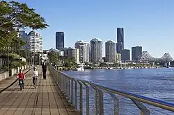East Brisbane is located 2.5 kilometres (1.6 mi) south-east of the CBD.[5] It is mostly residential, with some small commercial areas,[6] and has many original Queenslander houses.[7]