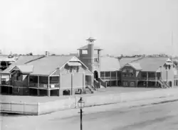 Enrolments at East Brisbane State School continued to rise during the first decade of the 20th century. A large playshed was erected during the 1907–08 financial year, and in 1910–11 a separate, single-storeyed timber Infants' School was constructed at a cost of approximately £1,000. This building measured 78 by 25 feet (23.8 by 7.6 m), and comprised two classrooms with dual desks and "kindergarten equipment", the latter being considered modern and progressive at the time.[1]