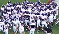 The East Carolina Pirates gather at the sideline as they prepare to take on the 2007 Virginia Tech Hokies football team