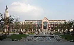 ECUPL now has campuses in three districts: Changning, Songjiang and Putuo, covering an area of 1,064 mu (70.93 hectares) and a total building area of 240,000 square meters.[7] At present, ECUPL has four LLD programs, i.e. legal historiography, criminal jurisprudence, economic jurisprudence, and international law, and nine LLM programs of law, i.e. theories of law, legal historiography, constitutional jurisprudence and administrative jurisprudence, criminal jurisprudence, civil and commercial jurisprudence, procedural law, economic jurisprudence, international jurisprudence, environment and resources protection jurisprudence and one LLM program of professional law and on-the-job students are accepted to pursue doctor and master's degrees. ECUPL has 22 majors for bachelors, i.e. law, economics reconnaissance study, finance, administration, English, Japanese, international business and trade, sociology, public security labour and social security, frontier defence management, politics and administration, journalism, public affairs administration, accounting and intellectual property, information science and technology, business administration, cultural industry management, Chinese literature, social work, among which the law major offers undergraduate programs intended for a second bachelor's degree in law.[8]