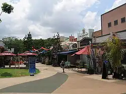 Littering was also rampant within the park, with The Straits Times claiming that it had the most litter of all the parks in Singapore in 1990.[35] In November 1990, a skateboard park was opened at Big Splash.[36] The park was also the first area which litterbugs cleaned up when given a Corrective Work Order (CWO) under a new law, implemented in 1992.[37] The park had also been facing considerable soil erosion, with two to seven per cent of jogging and cycling paths relocated as of 1993. Nevertheless, the Parks and Recreation Department stated that the soil would stabilise.[38] In November 1992, Sun Corporation announced plans to develop a $40 million leisure and recreation park at the lagoon.[39] The development was handed over to Unicentral in 1993, but by 1994, the plan had run into trouble, with building plans still not approved.[40]