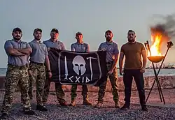 Following the Russian invasion of Ukraine, it saw combat operations in Kharkiv Oblast. On 27 February 2022, they defended the police building in Kharkiv during the Battle of Kharkiv.[19] It also operated its own medevac service and evacuated wounded and disabled from the combat zone of Kharkiv Oblast.[20] Three soldiers of the company (Maksym Serhiyevich Volyk, Oleksandr Klushin and Tarusin Bohdan) were killed in combat on 2 March 2022.[21][22] On 16 March 2023, during the 2022 Kharkiv counteroffensive, they attacked Russian forces in Mala Rohan.[18] On 17 March 2022, they destroyed MTLBs and ATGM positions were destroyed and a large number of Russians were killed.[18] Another soldier of the company (Dmytro Kupriyanov) was killed in action on 18 March 2022.[21] Following the liberation of Mala Rohan and Vilkhivka, the company saw further engagements during the Eastern Ukraine campaign.[18]