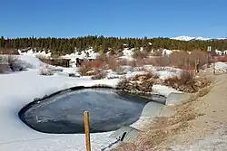 The East Fork just after it goes under County Road 9 and just before it merges with Tennessee Creek to form the Arkansas River. | |