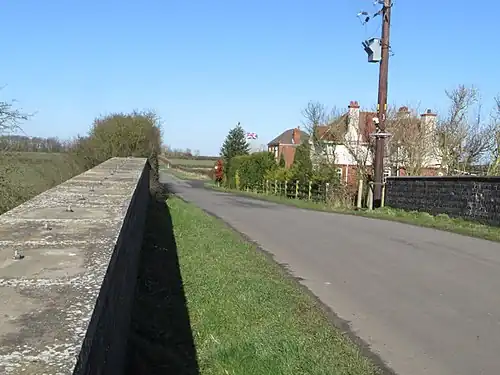 The station was the only one on the line built with two brick faced platforms,[5] though the second track and platform were removed in later years.[10] In 1954 the platform facilities consisted of a seat, a corrugated iron shelter a station sign reading East Halton Halt and two lamps.[11][12][13][14]