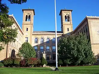 East High School is a public high school serving the sixth through twelfth grade in Rochester, New York, and is part of the Rochester City School District, and in partnership with the University of Rochester as the school's Educational Partnership Organization (EPO).[4] The school opened in 1902 on 410 Alexander St, and was designed by noted Rochester architect J. Foster Warner. The school was later moved in 1959 to its current location, 1801 East Main Street. Since 2002, changes have occurred, including the re-addition of a junior high and the splitting of the school into separate academies.