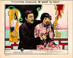 East Is West is a 1922 American silent drama film directed by Sidney Franklin and starring Constance Talmadge.[2] The film is based on a 1918 Broadway stage play of the same name starring Fay Bainter as Ming Toy.[3] It was remade as a talkie at Universal in 1930 with Lupe Vélez.