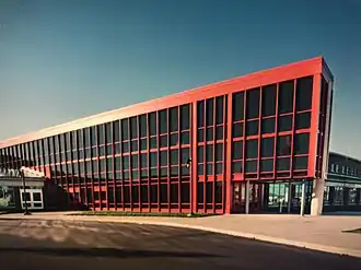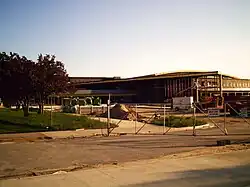 East Kentwood High School was built in 1969 and opened in fall 1970.[7] Since then it has undergone numerous renovations, including the addition of the West Wing in 1975 and the construction of the Freshman Campus in 1994.[8] Further construction was finished in 1983, 1986, 1994, and 2006. The 1994 project included a renovation of the fieldhouse and expansion of the West Wing, which involved adding several new science classrooms. In the mid-1980s, a south corridor was completed to shelter students crossing each wing. East Kentwood is one of two public high schools in the state of Michigan to have its own ice arena on campus. East Kentwood also has its own competitive and community swimming pools, and a 1,600-seat Fine Arts Auditorium.