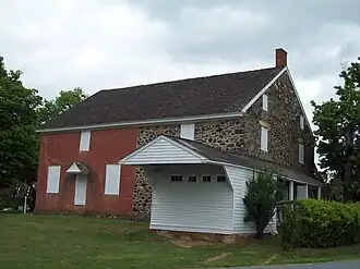 East Nottingham Meetinghouse, or Brick Meetinghouse, is a historic Friends meeting house located at Rising Sun, Cecil County, Maryland. It consists of three different sections: the Flemish bond brick section is the oldest, having been built in 1724, 30 feet 3 inches (9.22 m) by 40 feet 2 inches (12.24 m); the stone addition containing two one-story meeting rooms on the ground floor, each with a corner fireplace at the south corners of the building, and a large youth gallery on the second floor; and in the mid 19th century, a one-story gable roofed structure was added at the southwest corner of the stone section to serve as a women's cloakroom and privy. It is of significance because of its association with William Penn who granted the site "for a Meeting House and Burial Yard, Forever" near the center of the 18,000-acre (73 km2) Nottingham Lots settlement and was at one time the largest Friends meeting house south of Philadelphia. The Philadelphia Half-Yearly Meeting was held here as early as 1725. During the Revolutionary War, an American Army hospital was established here in 1778 for sick and wounded troops under General William Smallwood's command and the Marquis de Lafayette's troops camped in the Meeting House woods on the first night of their march from the Head of Elk to victory at the Battle of Yorktown in 1781.[2]