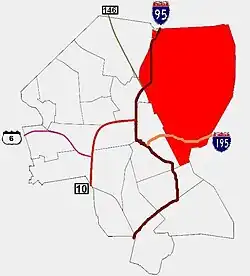 The area is separated from East Providence, Rhode Island, to the east by the Seekonk River. To the west it is separated from the rest of Providence by the Providence River and Interstate 95. To the north, it borders Pawtucket, Rhode Island. To the south, it abuts Narragansett Bay, which is formed by the confluence of the Seekonk and Providence Rivers.