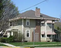 - The Holtan house at 1004 E. Main Street is a Prairie School-style house. The Holtans built a house here in 1896, but it was probably rebuilt or extensively remodeled around 1911 to a style then current. Typical of Prairie school is the horizontal emphasis in the wide, flared eaves. Unusual is the decorated fascia on the eaves. John Holtan managed the American Cigar Company, and served mayor and president of the First National Bank of Stoughton.[3][4]