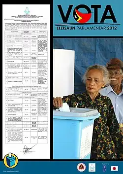 - ^ "STAE: Rezultadu Provizorio Eleisaun Parlamentar 2012". Archived from the original on 5 December 2012. Retrieved 8 July 2012.