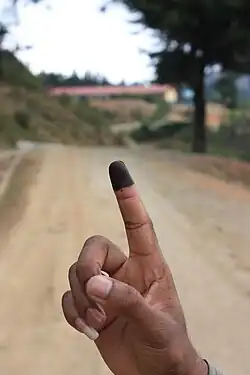 The Australia Timor-Leste Friendship Network confirmed free and fair elections in Timor-Leste. There were only minor technical problems.[49] The American International Republican Institute also attested to a peaceful election in Timor-Leste, which remained without major incidents and generally met international standards. Only minor irregularities were registered, but these are said to have had no effect on the election results. For example, not every polling station was checked before casting the ballot to ensure that the voter did not already have an ink-stained finger, which would indicate that the vote had already been cast. In some polling stations, there were irritations regarding the positioning of voting booths, and election observers sporadically registered voters who had not yet reached the minimum age of 17.[50] UN Secretary-General Ban Ki-moon also congratulated Timor-Leste for the peaceful conduct of the elections.[51] Praise also came from the European Union and the Community of Portuguese-Speaking Countries.[52] The Friendship Observer Mission (FOM), which consisted of various East Timorese and foreign members, listed several problems and violations in its report. This concerned, in addition to the Frenti-Mudança's campaign with paid election workers, lack of checking for stained fingers of voters (the sign that they had already voted) and the appearance at election rallies of men in traditional dress wielding traditional weapons such as spears and surik. While FOM recognises that these are part of the country's folklore, they see a fundamental problem with the appearance of armed people in election campaigns. The Chefe de Suco of Lelaufe announced at an election rally in Lifau that he would force all parties in his Suco to remove all banners and party flags that were not from the CNRT.[34] In the two polling stations in Lelaufe, the CNRT only received 32.63% and 44.20%.[53]