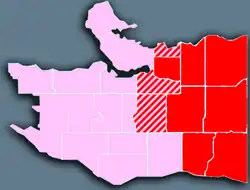 Politically, East Vancouver has often supported left-wing political candidates although demographic changes since the 1990s (e.g. significantly increasing family income levels) may be causing voting patterns to become more diverse. More specifically, the Northern portion of East Vancouver consistently votes for left-wing politicians by large margins, although the Southern areas tend to vote for centre to centre-right candidates.[26]