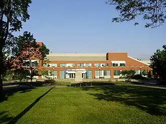 The East York Civic Centre was the municipal office of the former borough of East York, now part of Toronto, Ontario, Canada as the result of municipal amalgamation. The two-storey civic building, located on the western side of Coxwell Avenue, was completed in 1990. Prior to 1990 it was the site of the East York Municipal Offices[1] built in 1948, additions added in 1963 and 1975.[2] The Township of East York Municipal Building was located nearby at 443 Sammon Avenue (replaced by St. Aloysius Catholic Elementary School 1962-2002 now as École élémentaire La Mosaïque).[3]