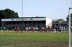 Shinewater Association was formed in 1990[2] as a replacement team for the Dental Estimates Board and a member of the East Sussex Football League, being based at the Temple Grove Playing field in the Old Town. Relocating to the Shinewater Lane playing field as the Shinewater Association Club were looking to form a football team. The club was accepted into the Sussex County League Division Three. Facilities at the time were basic, sharing the wooden pavilion building with a local cricket club. In 1992 the pavilion was destroyed in an arson attack and the cricket club relocated to The Saffrons taking the insurance money with them leaving the club with financial difficulties. A grant was secured from the Football Foundation and players were allowed to change in the association club build 400 yards away whilst a new clubhouse was being built. The new clubhouse was opened during the 1992–93 season and the cricket club moved back in, along with the money to improve the clubhouse which had not followed building regulations.